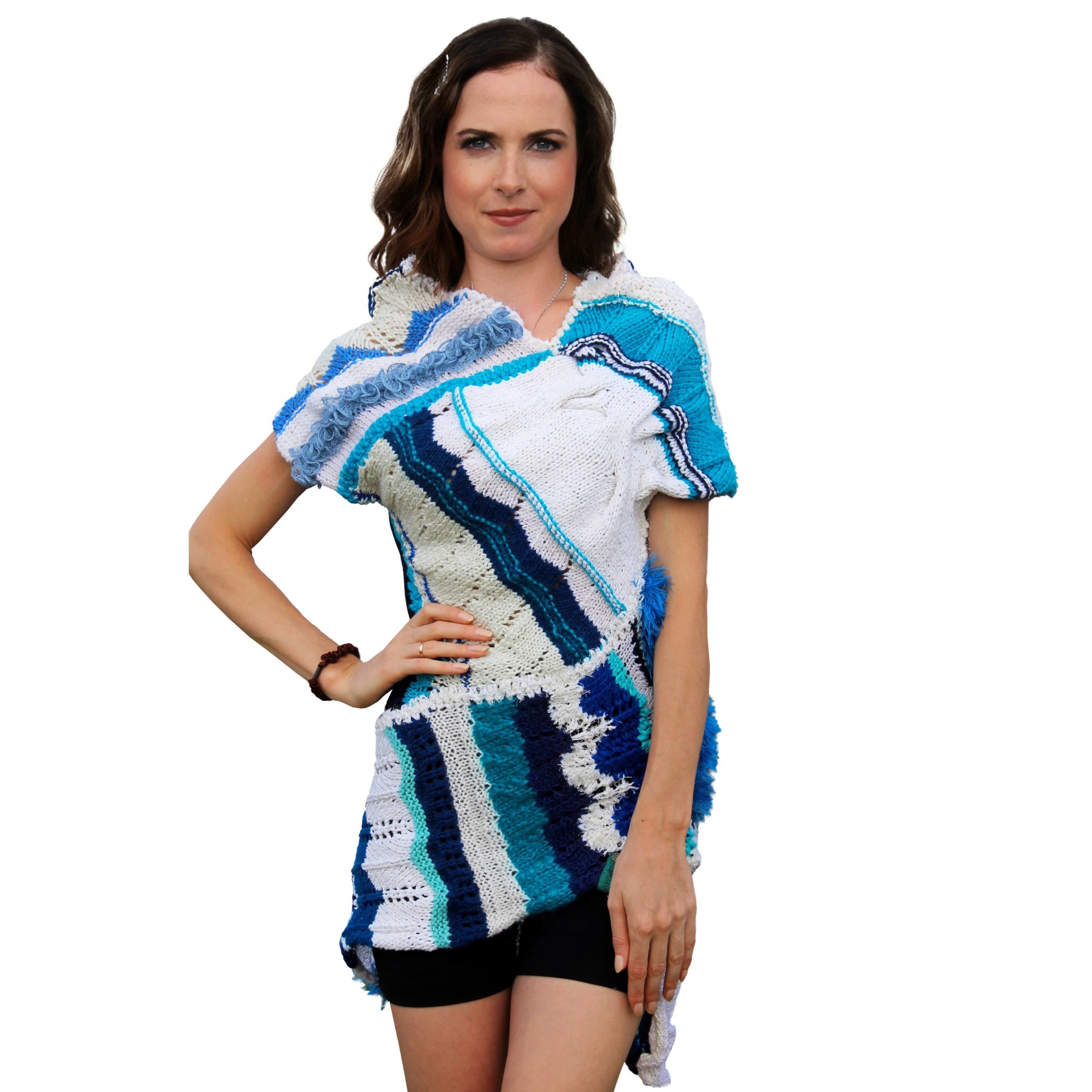 Ocean Whispers top. Spiral knit, light blue with blue and white. For days when being convenient is optional.
